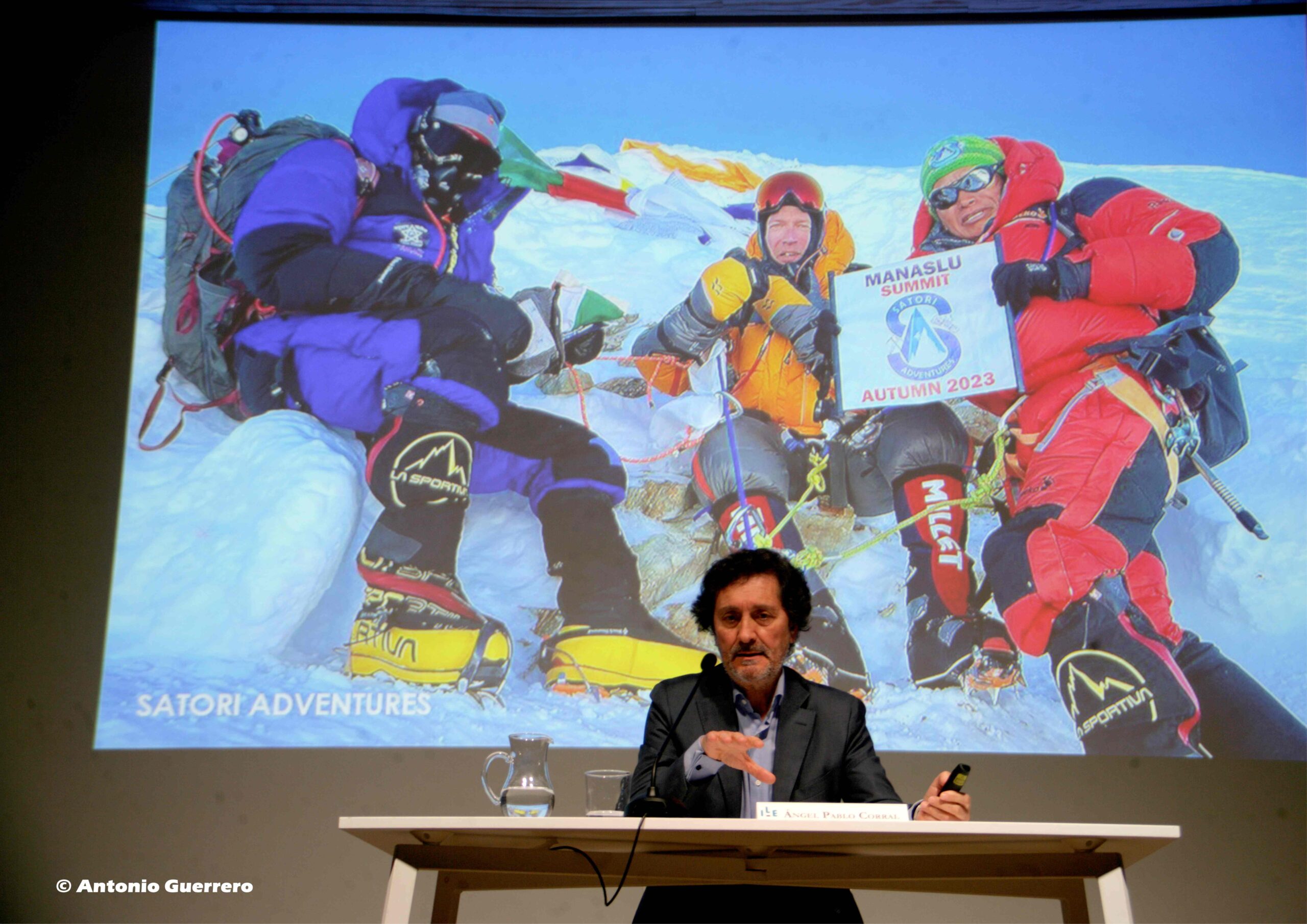 Con un estilo ameno y directo, Ángel Pablo nos habló sobre esta montaña, sus ascensiones, sus gentes, los grandes alpinistas que la han ascendido, la controversia de las expediciones comerciales y un emocionante recuerdo a nuestro amigo Carlos Suárez que nos dejó hace poco.