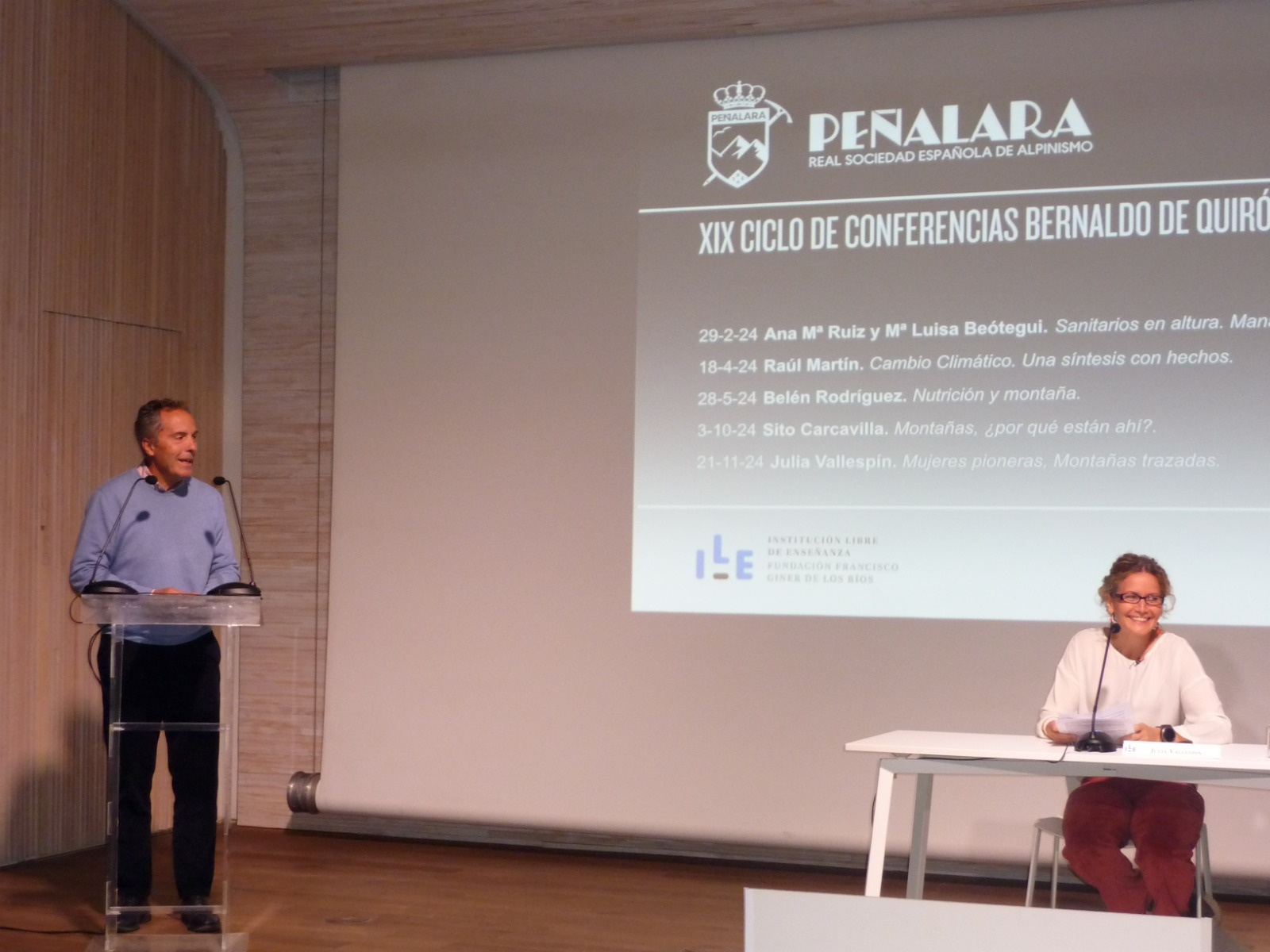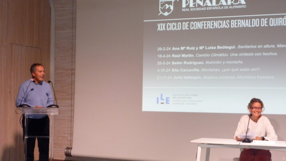 El pasado 21 de noviembre nuestra consocia Julia Vallespín pronunció la conferencia Mujeres pioneras. Montañas trazadas, cerrando así el XIX Ciclo de Conferencias Bernaldo de Quirós, organizado por la vocalía de Cultura de la RSEA Peñalara y que se celebró en el salón de actos de la Institución Libre de Enseñanza.