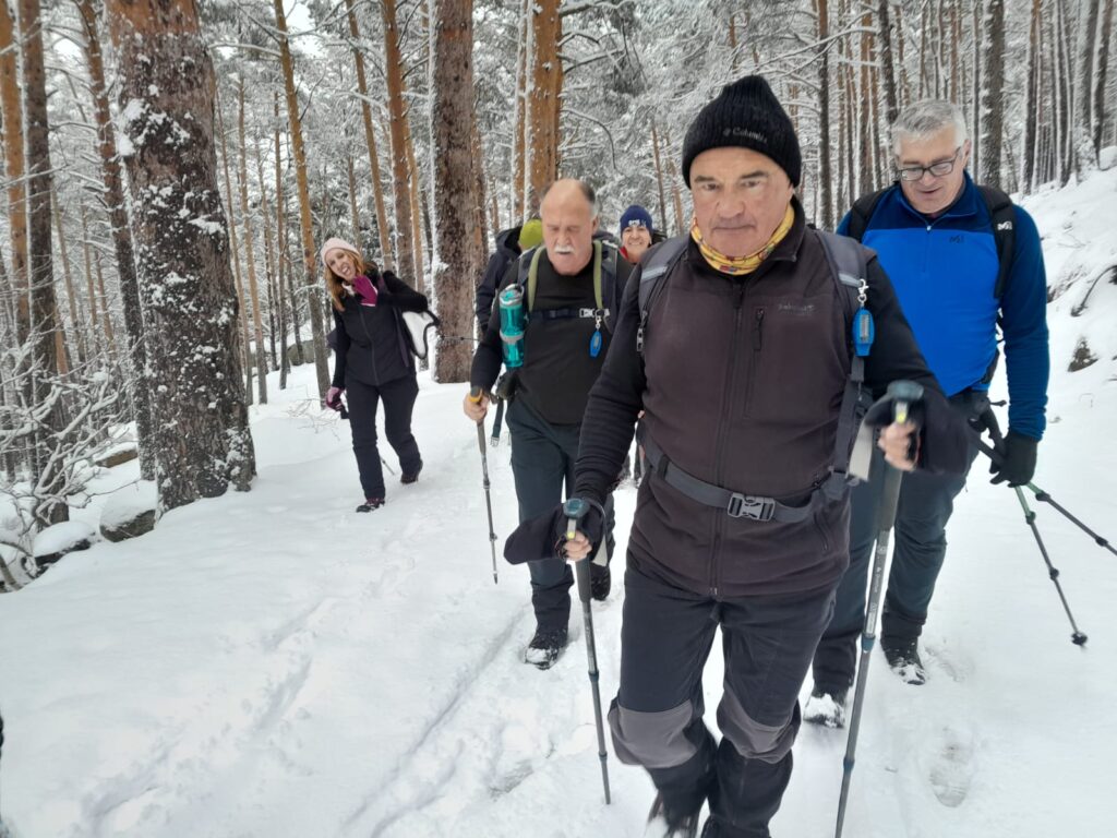 El paisaje era puramente invernal con un suelo tapizado por una capa de nieve virgen de 15 – 20 centímetros. Al transitar principalmente por bosque estábamos muy protegidos del viento y pudimos disfrutar de paisajes de postal navideña.