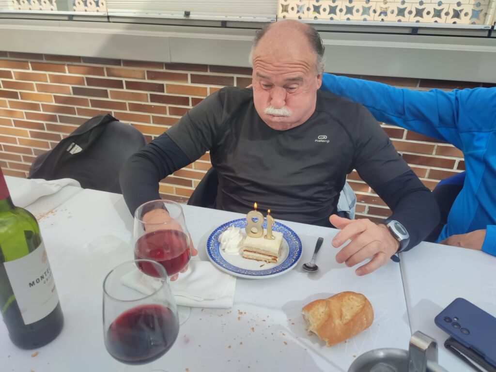 Finalizamos la actividad con una comida de hermandad muy agradable con tarta y vela de cumpleaños de Juan de Dios y culminada con un “chupito de Fairy” con el que nos obsequió nuestro Paquito (Fran para las chicas).