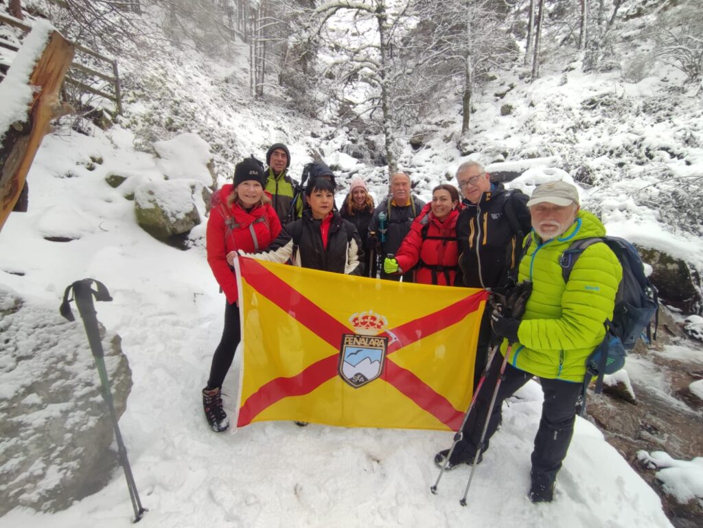 Llegamos a la chorrera de Mojonovalle, que bajaba con bastante caudal y con todas sus orillas repletas de nieve. Tras las fotos de rigor regresamos desandando la andado, llegando en hora al punto de salida, eso sí con un pequeño susto, ya que Paco tuvo bastantes dificultades para encontrar las llaves de su coche.