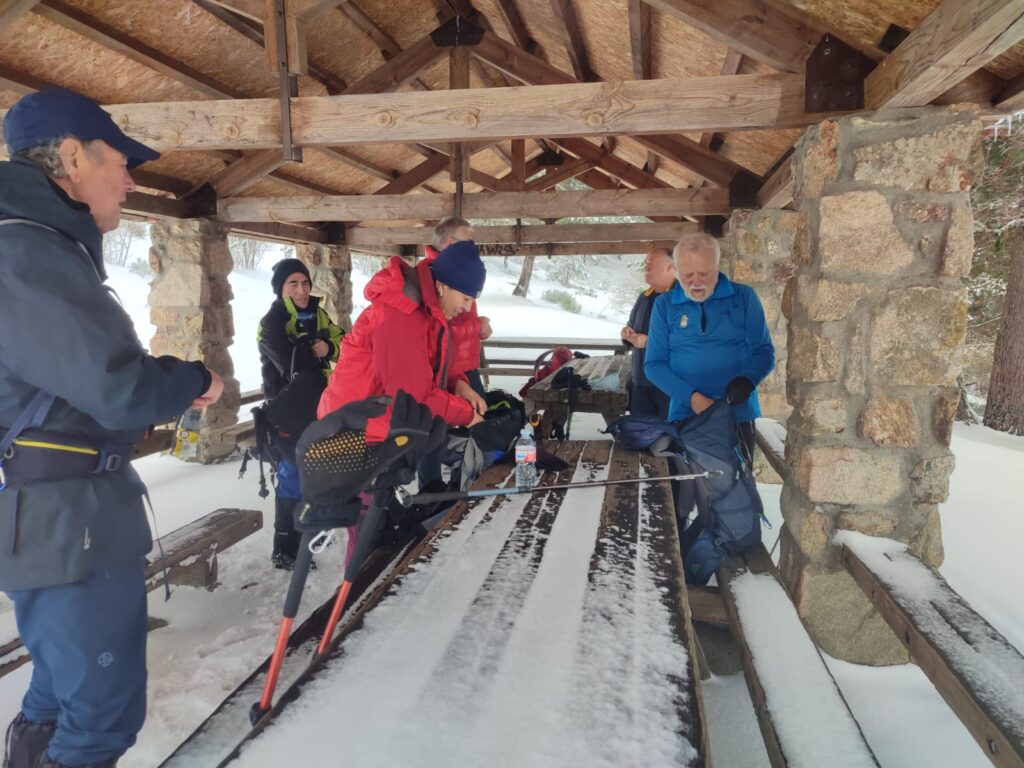 Tras coronar el puerto de Canencia, alcanzamos el área recreativa del mismo nombre y en un cobertizo hicimos una parada para repostar (fruta, frutos secos…) y un poco más adelante rellenar nuestras cantimploras en la fuente de la Raja.