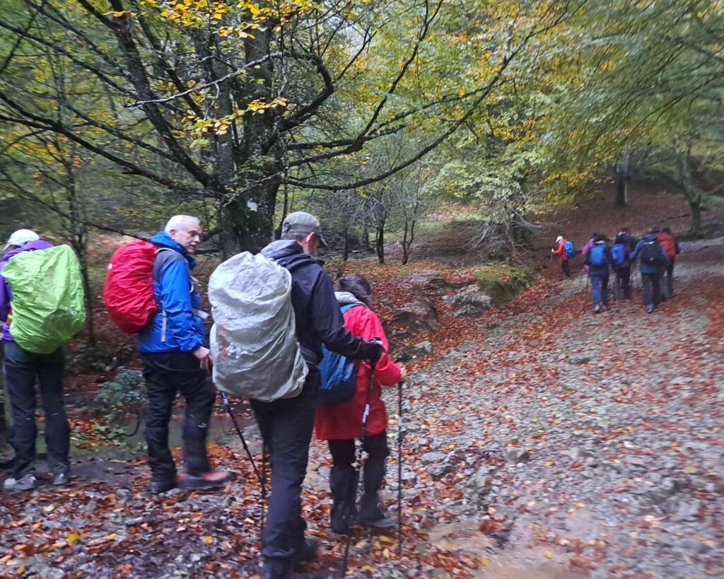 Entre los días 26 y 27 de octubre de 2024, veintidós peñalaros realizamos las actividades programadas en el calendario de la Sociedad. La primera jornada, el sábado, partimos de nuestro alojamiento situado junto al Santuario de Aránzazu a las 9 de la mañana pertrechados de ropa de agua y paraguas.