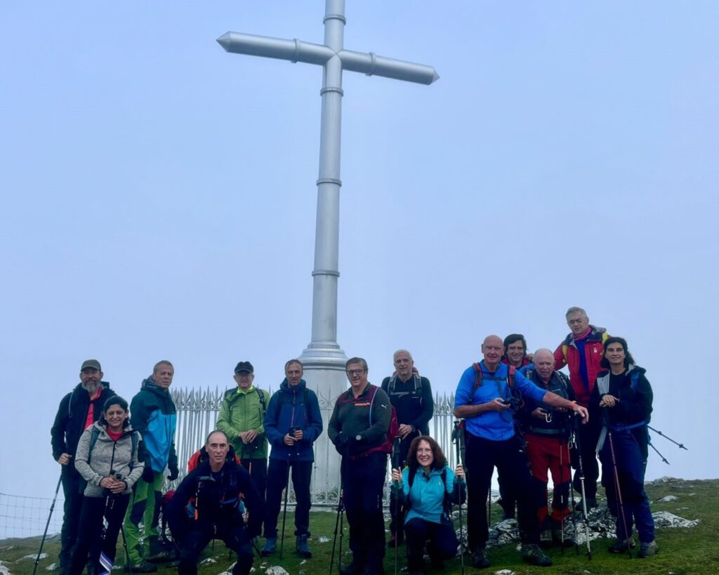Durante toda la noche del sábado no dejó de llover, no obstante, amaneció muy nublado, pero por fin, sin lluvia, cumpliendo con el programa previsto, subir a la cumbre del Aloña o Gorgomendi de 1.238 metros de altura.