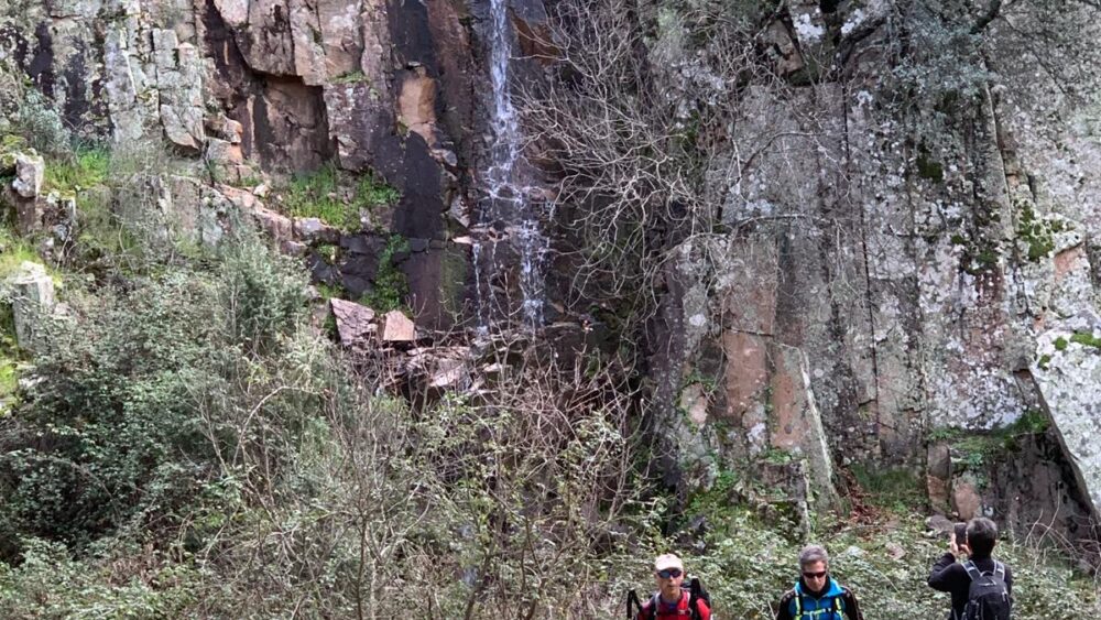 Empezamos a subir por pista forestal hasta el collado del risco del Gelechal. No es un camino fatigoso ni requiere de un esfuerzo notable, lo que favorece el cruce de agradables y entretenidas conversaciones. Una vez en el Collado descendemos hasta el fondo del valle donde hacemos una breve parada para reponer fuerzas. El paisaje es espectacular, un bosque de encinas, pinos, jaras y romero en flor nos va envolviendo y hace que la ruta se transforme en una sorpresa general.
