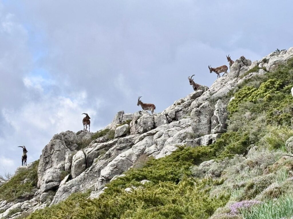 La excursión del domingo va a ser un contrapunto de la del día anterior. El día aparece risueño y la ruta transcurre a menor altitud, apareciendo una vegetación variada: incienso silvestre, lentisco, torvisco, cornicabra. etc. y la floración de la primavera muestra su esplendor en forma de amapolas, peonías y demás florecillas que pintan de rojo, malva y amarillo, el verdor rebosante de las praderas.