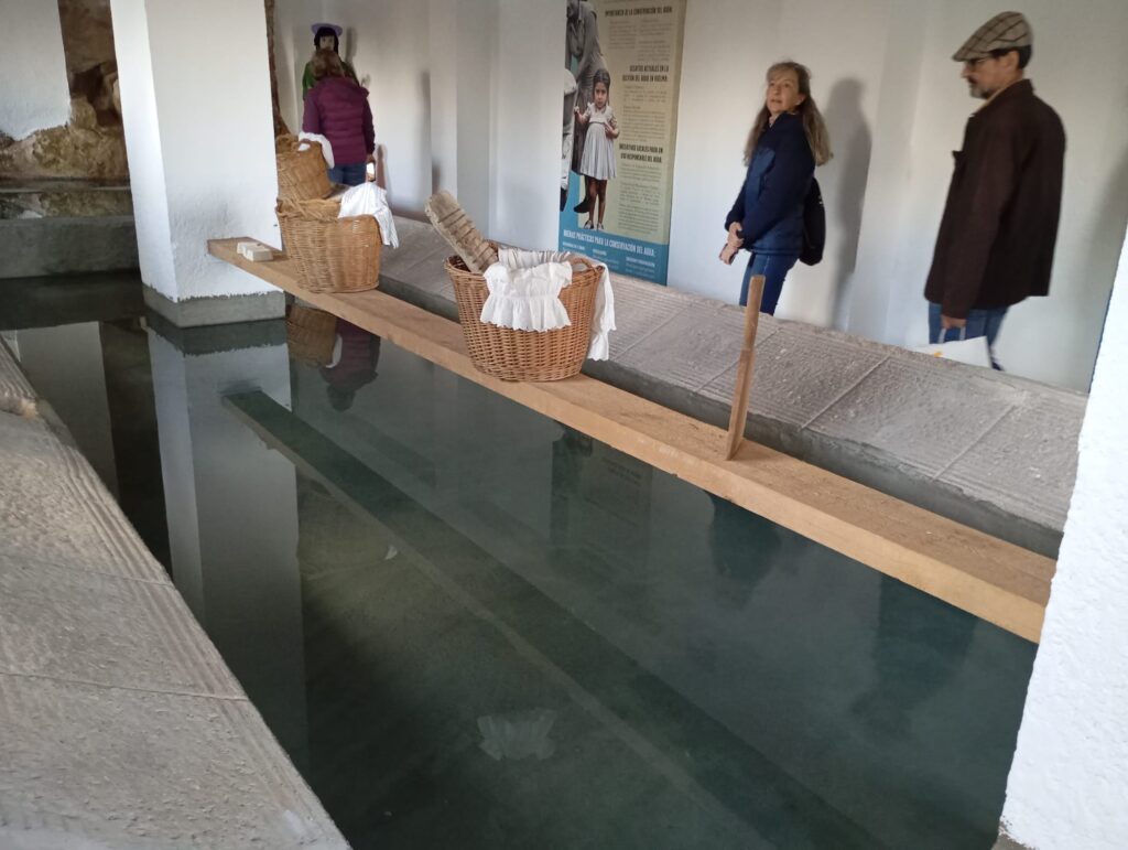 Al recién remodelado lavadero se llega en seguida y nos ilustra un aspecto importante sobre aspectos cotidianos en la vida de los pueblos como en la gestión del agua, No en valde, el nombre de Huelma parece venir del árabe, Oued –al ma (río de agua o manantial).