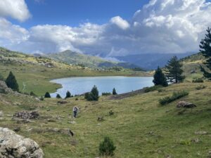 Pues bien, pasados unos minutos, como no había “quórum” y las condiciones climáticas eran cambiantes, se tomó la decisión de dividir el grupo. Cinco osados e intrépidos integrantes decidieron continuar camino hacia Peña Telera y el resto del grupo optamos por hacer un plan B, es decir, bajar de nuevo al ibón de Piedrafita y dirigirnos hacia un arco geotectónico “cercano” para terminar así la ruta de forma circular.