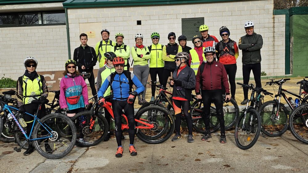 Empezó la jornada en el parking del cercano campo de deportes municipal, una mañana con un cielo seminublado y con una temperatura ideal para el pedaleo. Después de los saludos y presentaciones correspondientes (presentaciones obligadas porque era mi primera salida con el grupo de montaña) empezamos a pedalear y, como siempre sucede en Peñalara, surge rápidamente la complicidad, la camaradería y, por qué no, el buen rollo que hacen que el recién llegado se sienta desde el primer momento cómodo y como uno más del grupo.