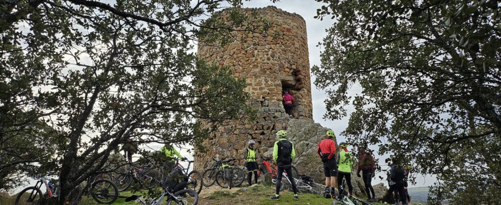 A los pocos kilómetros de este paseo bucólico cambiamos de ambiente y de pedalada. Dejamos el pantano y acometimos una corta pero exigente cuesta que nos condujo a un paisaje distinto: encinares y dehesas ganaderas que nos mostraron esa cara rural y campestre que también tiene Madrid. Y de pronto una sorpresa: la Atalaya de Venturada. Una atalaya de origen musulmán conectada con otras de estructura y forma similar en la C. de Madrid y que suponían una línea defensiva con los territorios cristianos del norte.