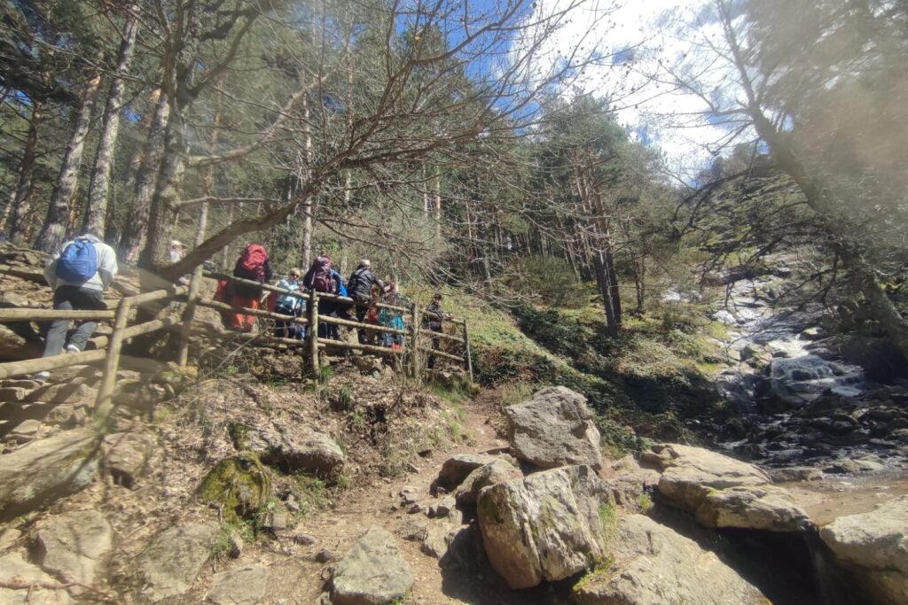 A continuación, comenzamos la marcha de descenso hasta llegar de nuevo al centro de interpretación abandonado y desde allí nos dirigimos a visitar la Chorrera de Mojonavalle. Era una hora prudente y pensábamos que merecería la pena visitarla pues tras un mes de tantas lluvias bajaría a reventar de agua. Nos encontramos con bastantes familias disfrutando de la imagen de la chorrera. Y después de las obligadas fotos pusimos rumbo a los coches.