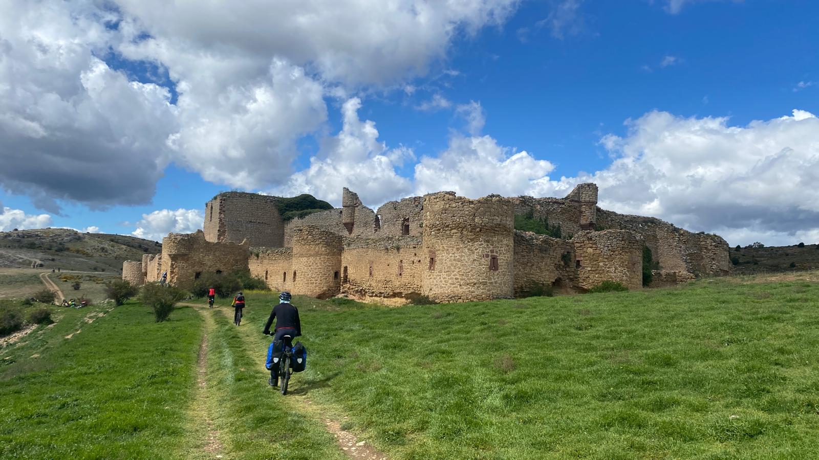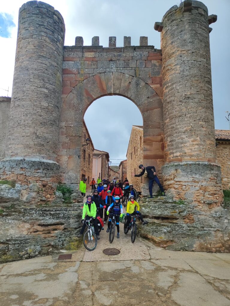 El domingo amaneció mucho mejor tiempo, y durante el día se confirmó que no nos mojábamos esta vez. Afortunadamente, pues durante el recorrido visitamos las ruinas del castillo de Caracena y las romanas de Tiermes, que tiene un acueducto digno de recorrer. Jornada más dura que la anterior, con más kilómetros recorridos, unos 47, pero sobre todo por los cerca de 1.000 metros de desnivel que ascendimos con nuestras monturas, unos encima de ellas y otros empujando, eso sí.
