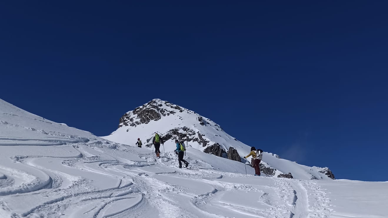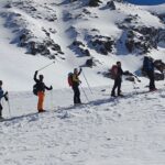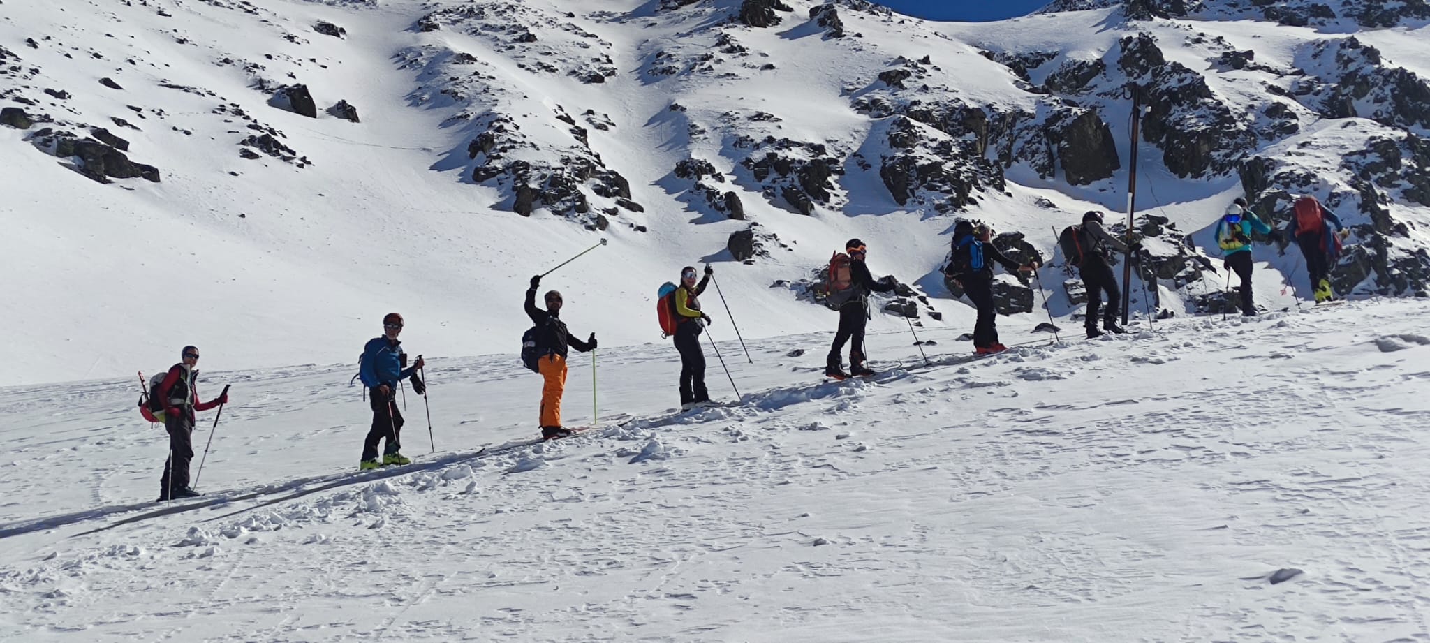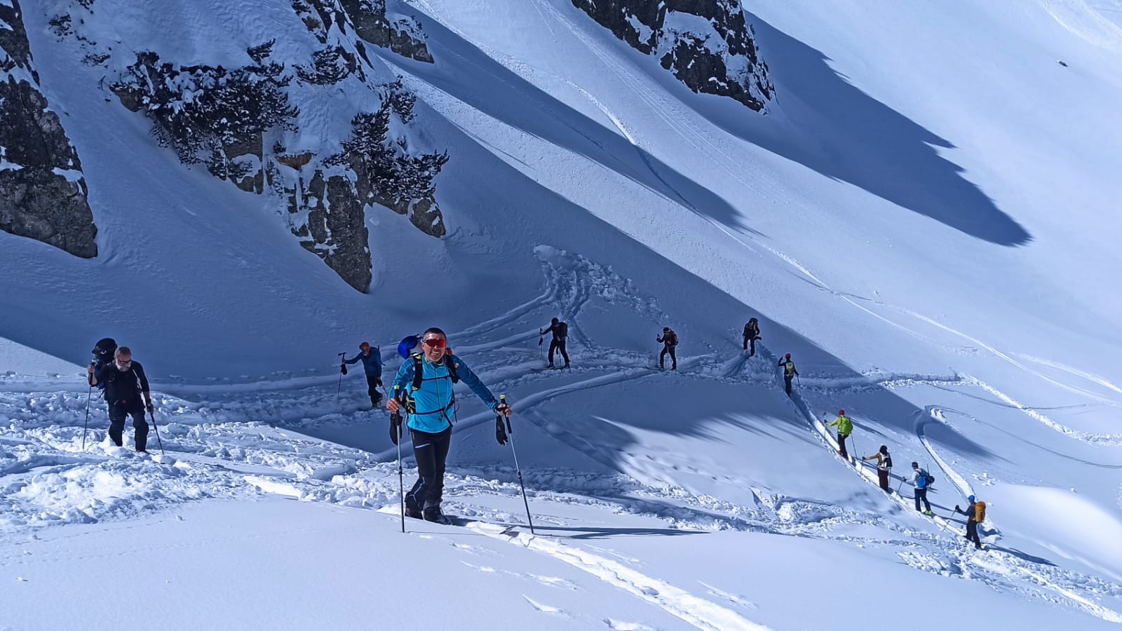 La bajada es también espectacular hasta los esquís y el descenso esquiando es de los más largos que recordamos : 1.800 m de desnivel.