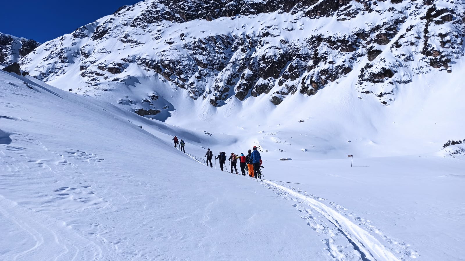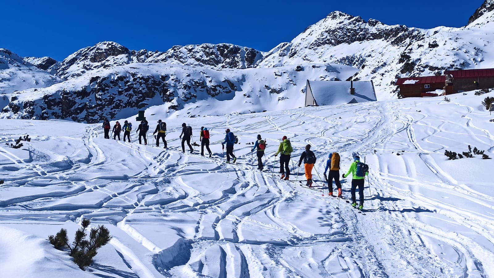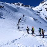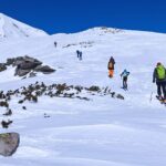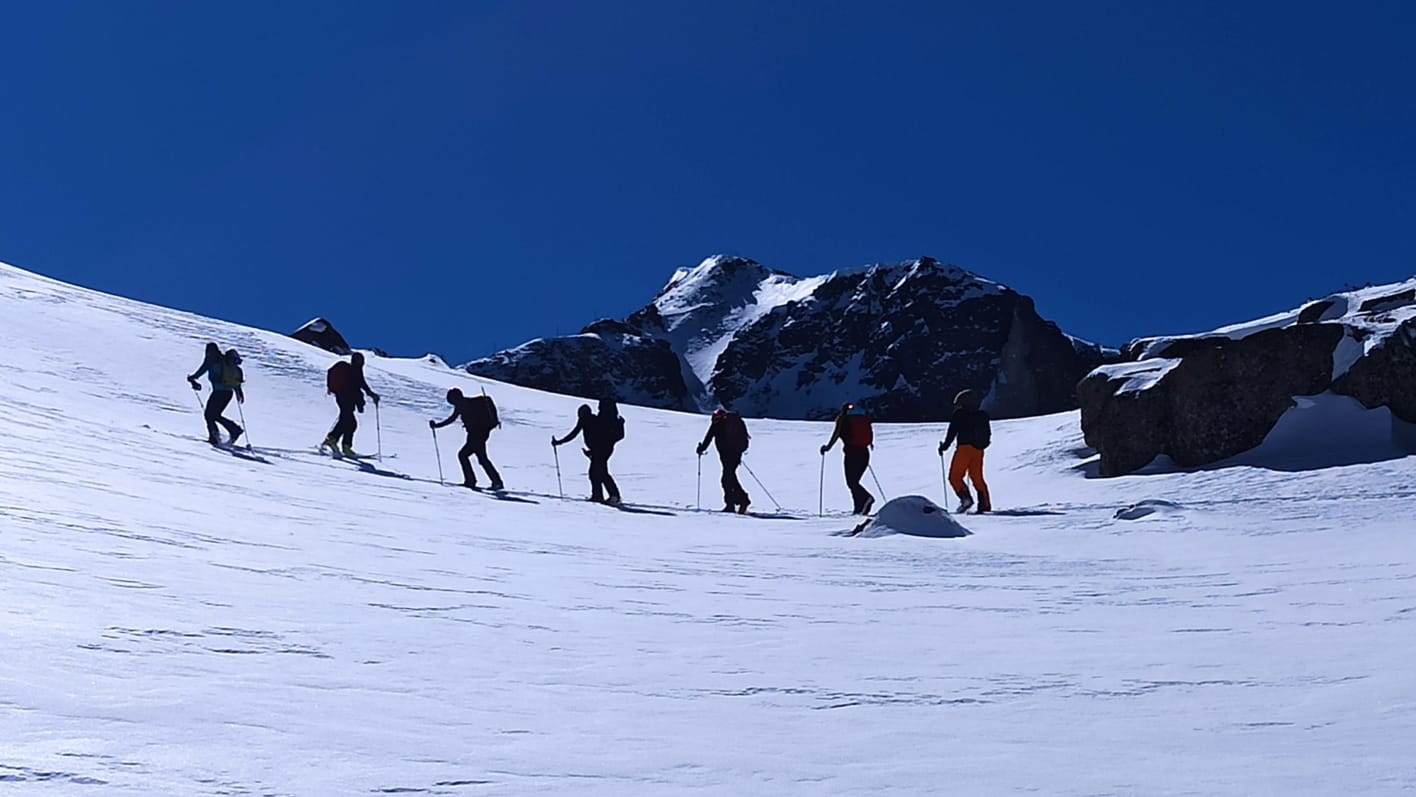 La bajada es también espectacular hasta los esquís y el descenso esquiando es de los más largos que recordamos : 1.800 m de desnivel.