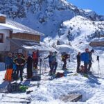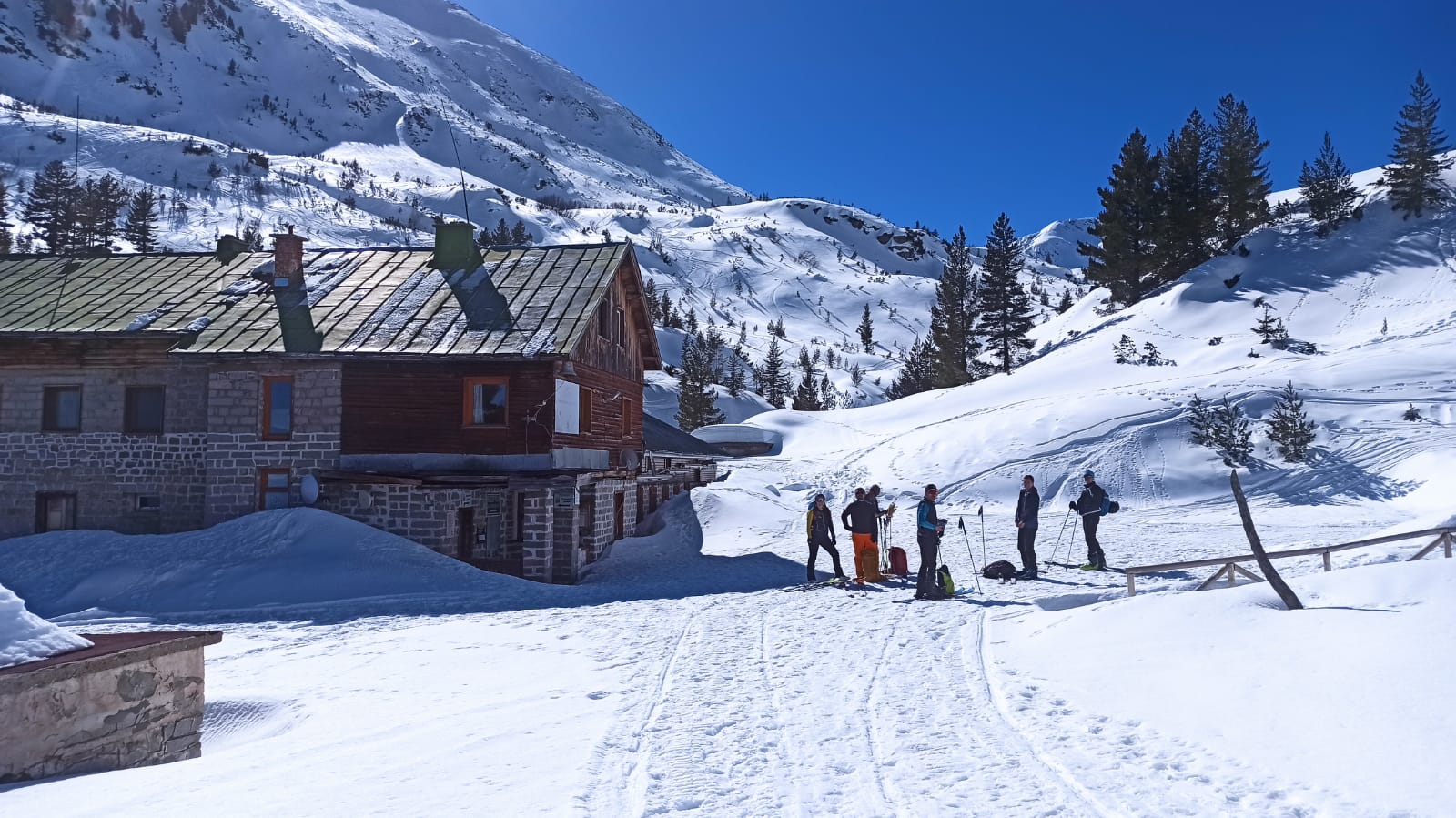 Hacemos un alto en el refugio a 2.000 m y seguimos bajando hasta alcanzar las pistas de la estación de Bansko.