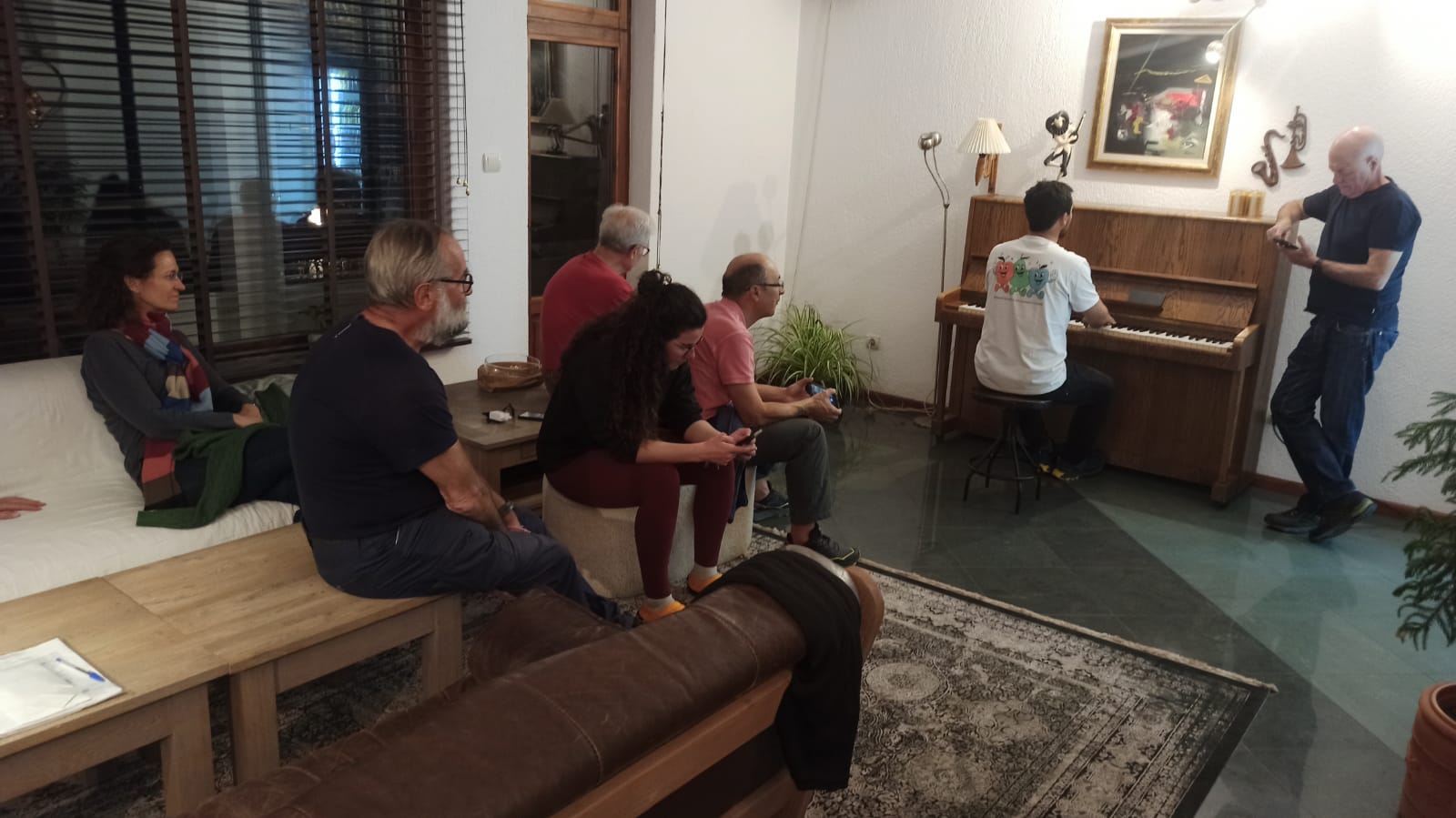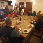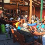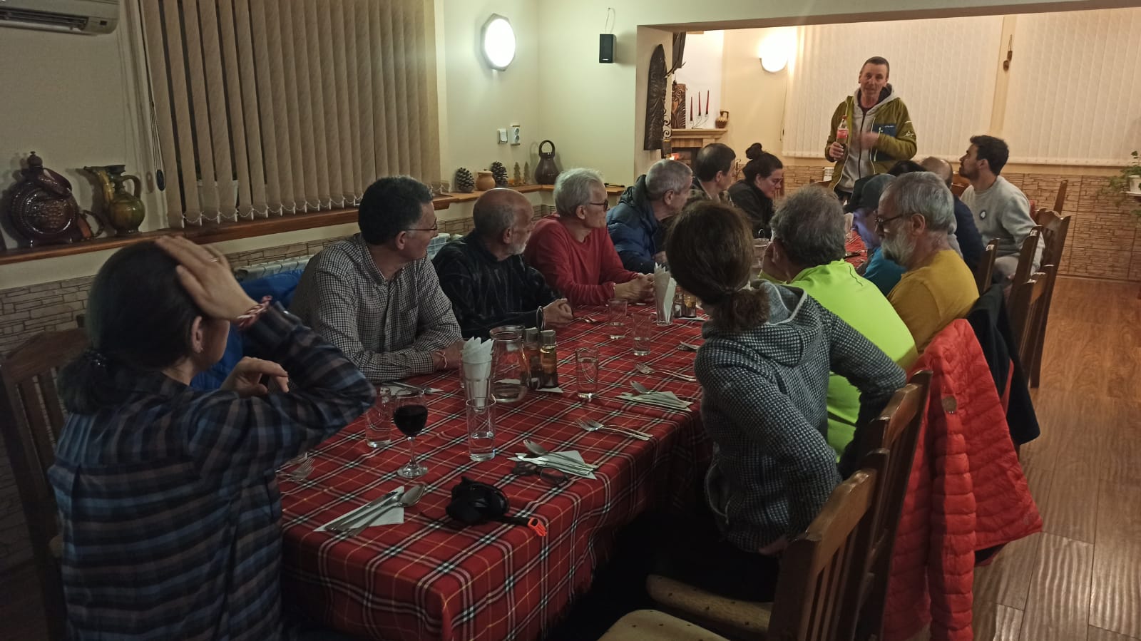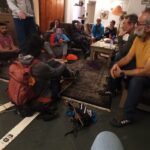 Tras las duchas, siestas y cervezas, el grupo completo se reúne antes de cenar para hacer planes para mañana, todos más animados y recuperados.