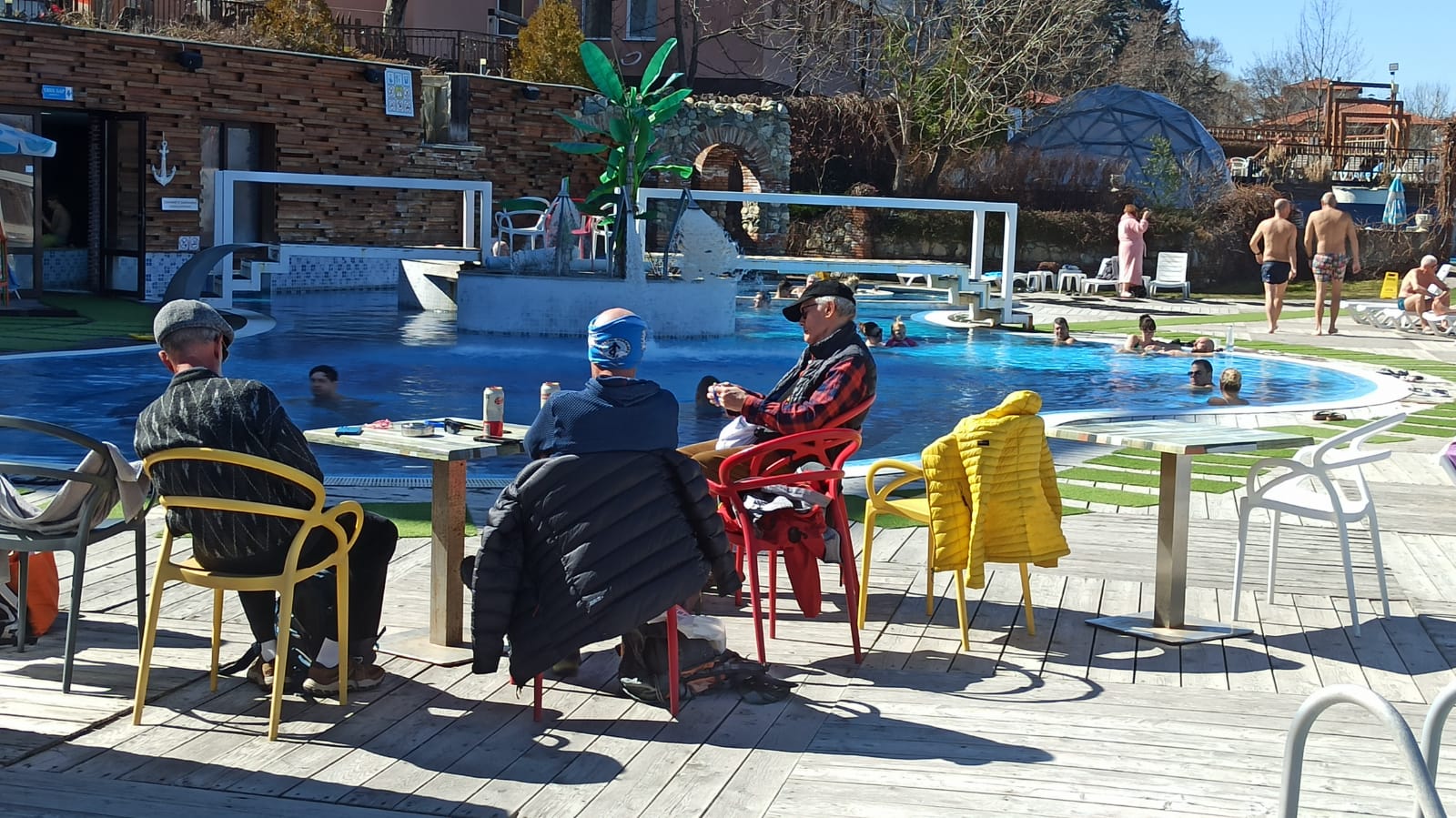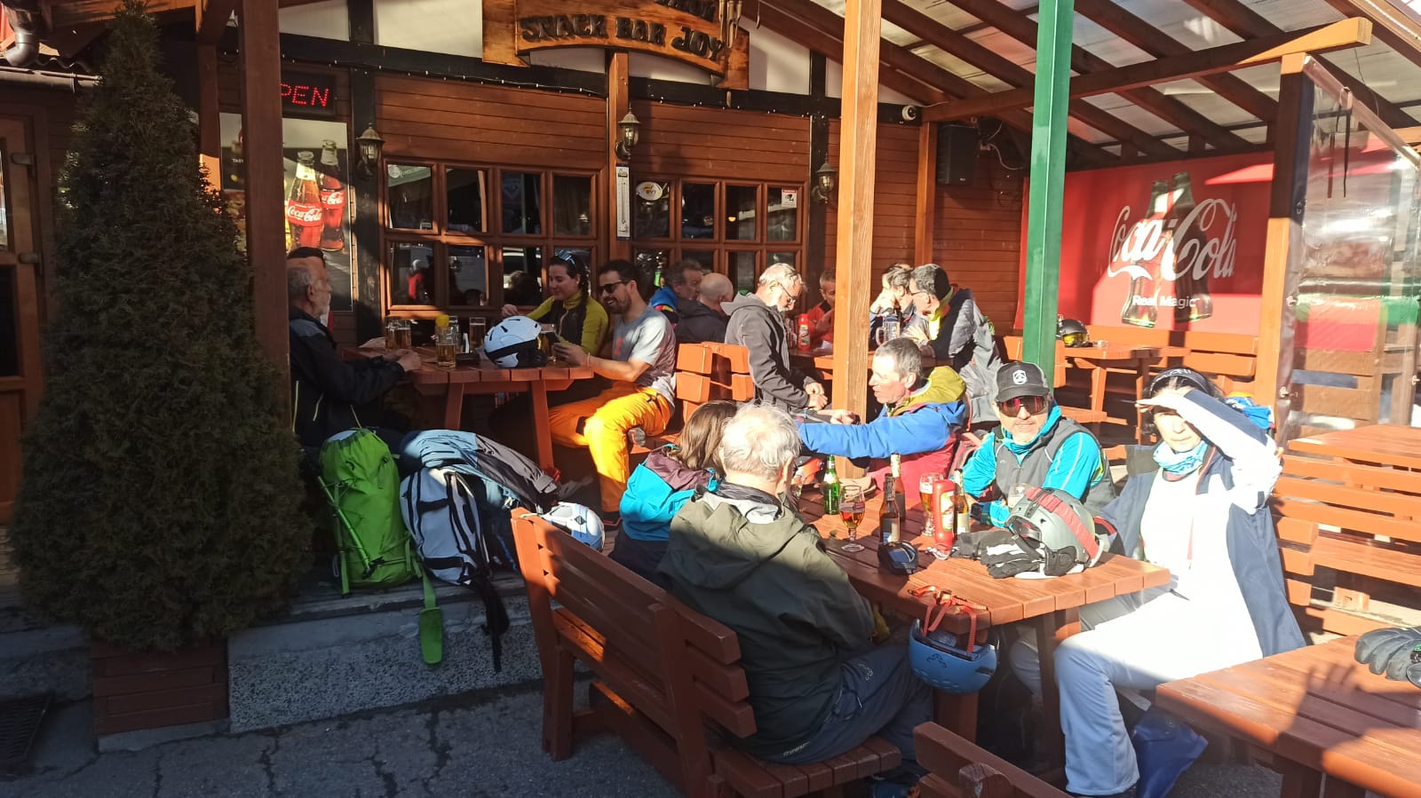 Es sábado y hay bastante esquiadores de montaña disfrutando de un nuevo día espectacular -hay nubes alguna vez en Bulgaria ?-.