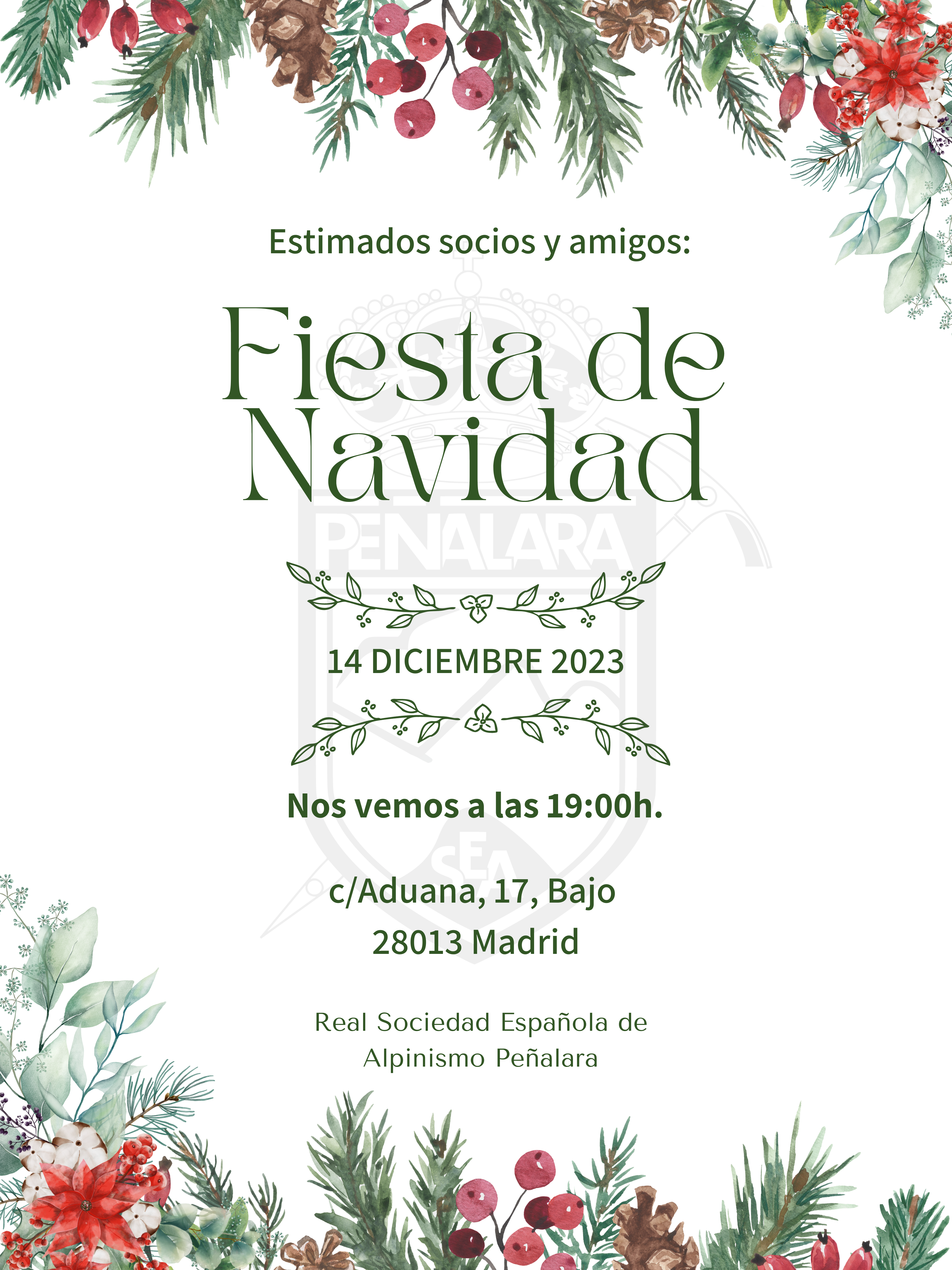 Os esperamos para el brindis el próximo jueves 14 de diciembre a las 19:ooh. en la sede social de la C/Aduana, 17, bajo (Madrid).