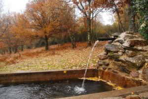 Cruzamos el arroyo, en esta zona ya vemos los primeros abedules, junto con avellanos, robles y acebos. El camino desemboca en una pista a la que nos incorporamos, hacia la izquierda (Noroeste). El camino nos conduce a la Fuentefría, un viejo abrevadero en una pradera de cambrones que marca el punto más alto de la ruta.