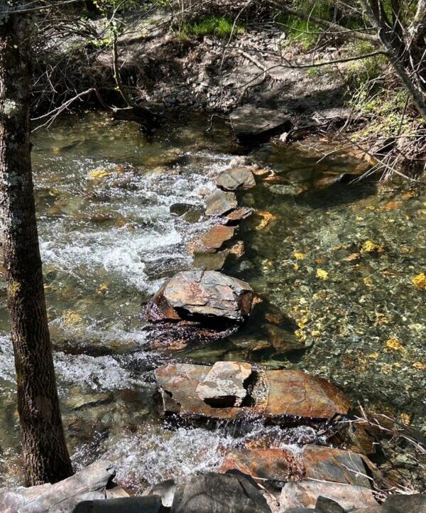 Abajo nos topamos con el Arroyo de la Vallosera, que se pasa por unos pisones dispuestos a modo de rudimentaria pasarela y que con el período de lluvias que hemos tenido ha perdido un par de pilotes. Tendremos que ingeniárnoslas bien para no mojarnos 😉 o bien confiar en que las semanas próximas a la salida disminuya el caudal del río. O simplemente descalzarnos, remangar pantalones y secarnos luego los pies con una toalla pequeña.