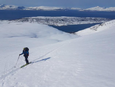 Hoy haremos travesía en la zona denominada Mainland Tromso, es decir, la Península central de Tromso. Hay muchas posibilidades, pero elegimos el Ullstinden por ser una montaña con una vista sensacional y una esquiada fantástica. Si las condiciones son buenas y nos aguanta el cuerpo haremos alguna otra foqueada en la zona. Regreso a nuestro alojamiento.