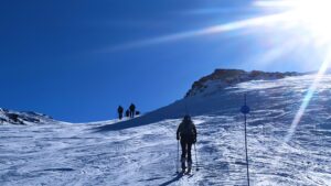 MATERIAL OBLIGATORIO / RECOMENDADO.- El habitual en actividades de esquí de montaña, crampones y piolet. En principio no será necesario el material de seguridad, ARVA, pala y sonda. Recomendable protección solar factor 50 como mínimo, y gorra o sombrero para el sol.