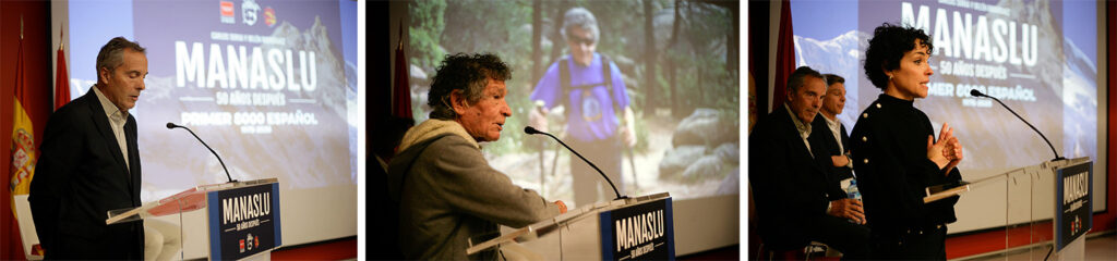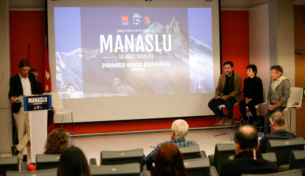 Ayer presentamos el proyecto “Manaslu 50 años después” en el el auditorio de la Consejería de Deportes y Cultura de la Comunidad de Madrid. El acto lo abrió con unas bonitas palabras el Director General de Deportes Alberto Tomé, donde también participó nuestro presidente Javier Garrido, el vicepresidente Alberto Flechoso, y como no podía ser de otra forma las estrellas del evento, Carlos Soria y Belén Rodríguez que nos relataron sus experiencias y la preparación para afrontar la que será la gran actividad del año. La expedición diseñada por Peñalara se enmarca en los actos conmemorativos del primer 8000 español; que allá por el año 1975, y tras otro intento anterior en 1973, consiguió llevar a la cumbre del Manaslu a Gerónimo López y Gerardo Blázquez. En aquella expedición participó intensamente un joven Carlos Soria.
