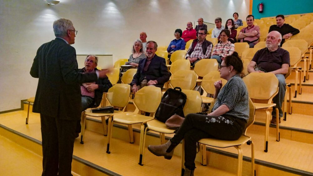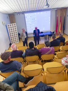 El Dr, Luís-Yagüe dio una conferencia con el título de “Montañismo en la 3ª edad” en la que planteó los beneficios del deporte y en particular el senderismo-montañismo en la 3ª edad y los requisitos que se deben cumplir para realizar esta actividad. A continuación se proyectaron los cortometrajes “Subida invernal al pico Peñalara (9 enero)” y “Subida al pico Peñalara como homenaje a nuestros socio fallecido Juan Carlos Lahorga (20 febrero)” ambos del grupo Martes Peñalara y el cortometraje histórico de Nodo “Hielo y Roca en Gredos” (Alberto Carles Blat, 1970) donde cinco socios de la RSEA Peñalara nos muestran la ascensión al Segundo Hermanito y el Pico la Galana del circo de Gredos en el invierno de 1970. Para terminar se abrió un coloquio con los asistentes acerca del modo de actuar en caso de una indisposición coronaria o pérdida de consciencia en la montaña.